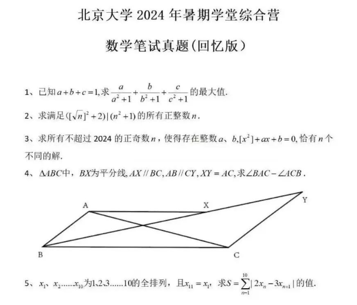 北京大学2024年暑假学堂综合营笔试试题