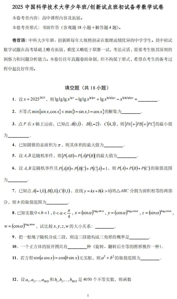 2025中科大少年班&少创班报名即将截止,报名结束后各位考生最重要的就是要准备校测考试,今年政策调整考核升级,备考一定要尽早,千万不能掉以轻心!自主选拔在线分享一份初试备考试卷。