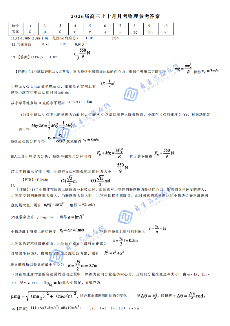 2026届四川省成都七中10月月考正在进行,物理试题已整理。试题侧重力学等主干知识应用与模型构建。自主选拔在线团队整理试题及答案,考生可扫码免费下载,还可添加老师进群,了解更多信息。