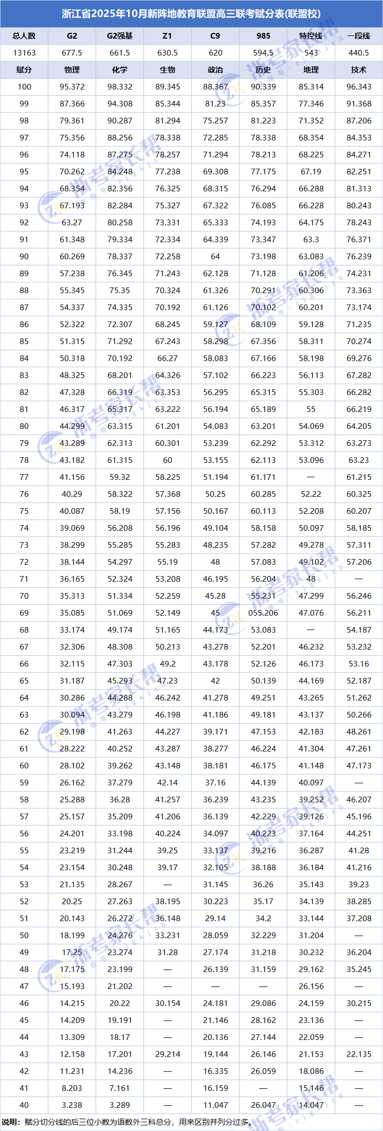 新阵地联盟(联盟校)特控线为543分、一段线440.5分。浙考家长帮根据等比例法换算出了新阵地联盟成绩对应的985/211/省重点院校的最低分!一起来看!
