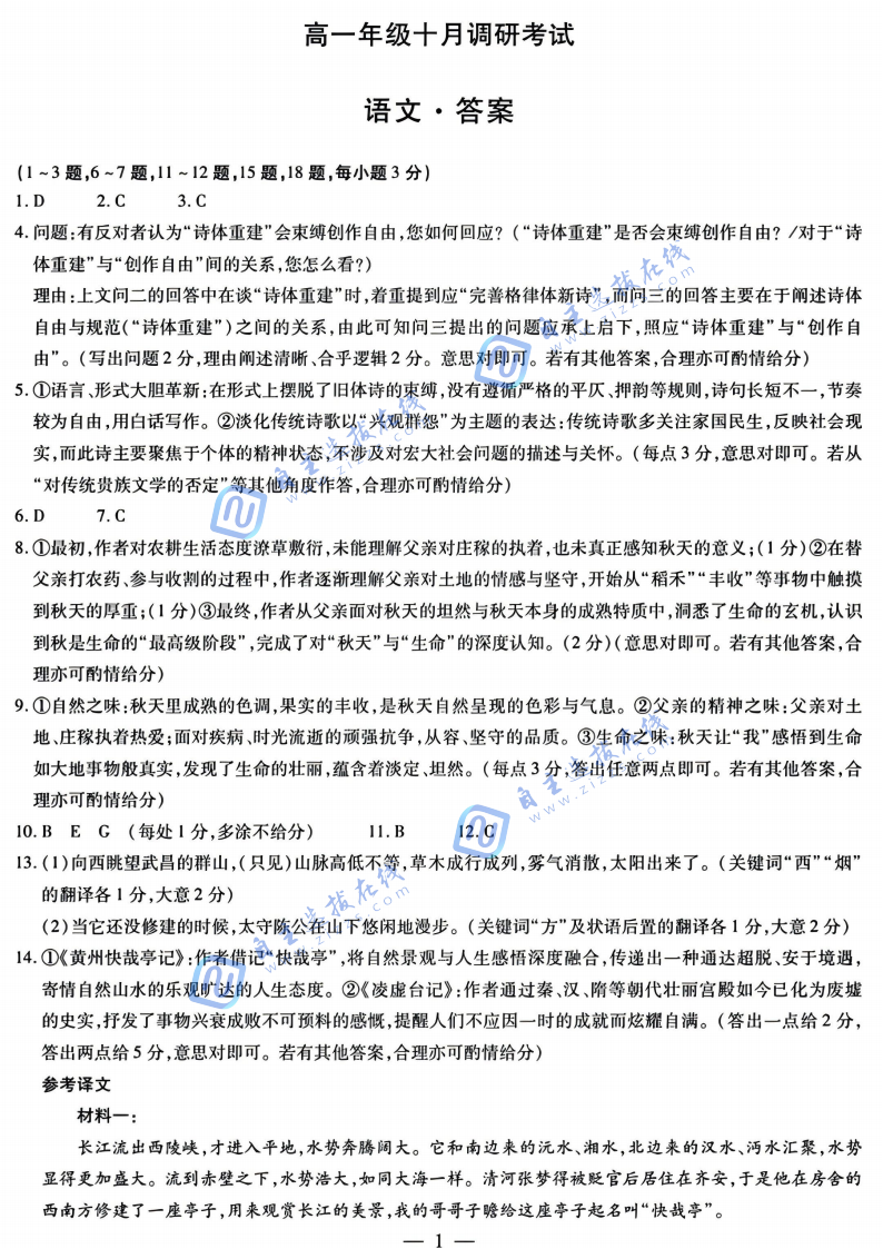 2025年安徽省天一大联考高一10月调研考试10月16日开考,语文科目已结束。此次联考是高一重要规范性检测。自主选拔在线团队整理了该考试语文试题及答案,供考生收藏、下载。