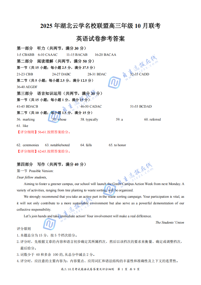2026届湖北云学名校联盟高三10月联考英语科目已考毕,试题覆盖多板块,注重语篇理解与跨文化交际考查。自主选拔在线团队整理该联考英语试题及答案电子版,提供下载方式,还提及其他科目及相关推荐阅读。