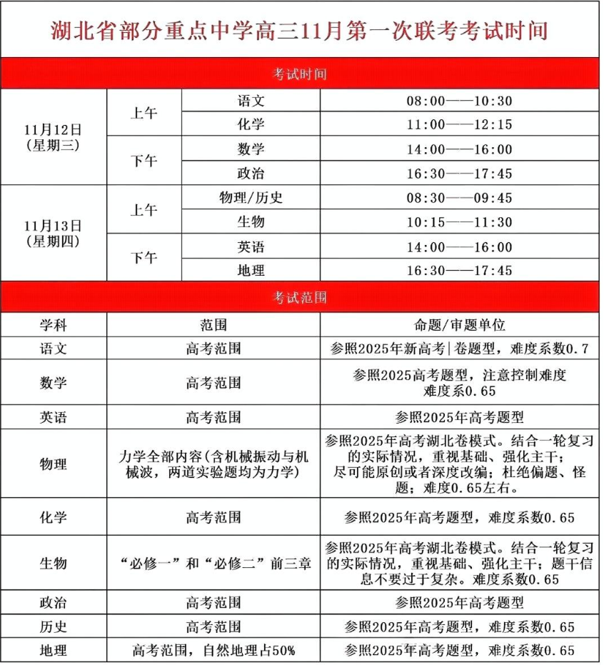湖北省部分重点中学高三11月第一次联考于11月12日~13日开考,此次考试是对前期复习成果的重要检验,考生可借此全面评估此次联考整体表现,系统检验各轮复习成效,精准定位知识薄弱环节,是进行横向对比、查漏补缺、调整后续复习战略不可或缺的权威参考资料。自主选拔在线团队整理湖北省部分重点中学高三11月第一次联考试试题及答案相关试题电子版,以供考生下载!