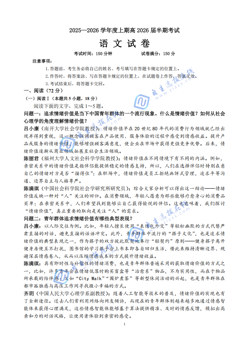 近日,成都市第七中学2025-2026学年高三上学期11月期中考试已顺利举行。为助力同学们高效复习,自主选拔在线团队特将语文科目试题与参考答案整理成清晰的PDF电子版。本套试题全面考查了学生的阅读理解、古文鉴赏及写作能力,结构严谨,贴近高考风向。帮助考生精准评估现阶段学习成果,深入分析得失,有效调整后续复习策略,为冲刺高考奠定坚实基础。