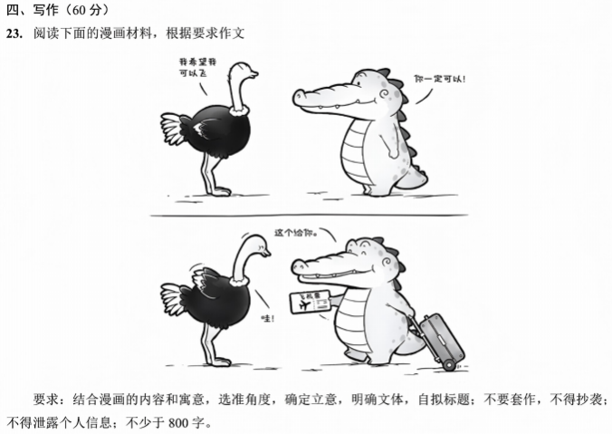 重庆南开中学2026届高三第四次质量检测于2025年12月5日到6日开考,目前语文考试题目已经出炉,此次的语文作文题目属于漫画类解读,漫画中,两个小动物的生动对话引发了广泛热议。那么,面对此题,考生应如何立意?又有哪些相关的作文素材可以运用呢?