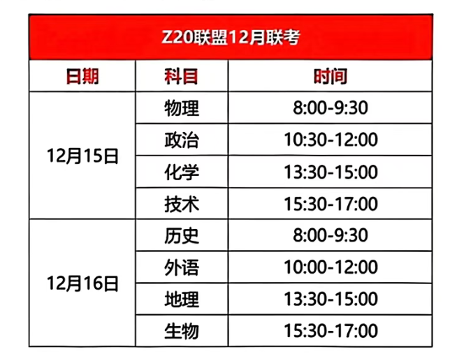 Z20名校联盟高三第二次联考安排