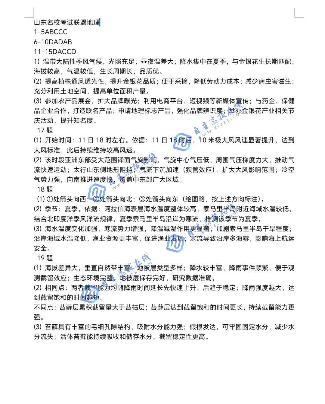 山东名校考试联盟2026届高三大联考地理试题及答案出炉,注重考查学生对自然地理、人文地理及区域可持续发展的理解与应用能力。