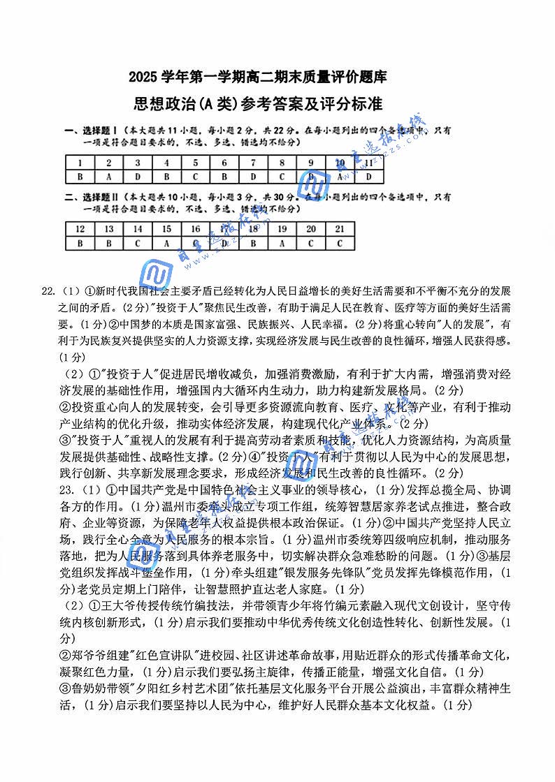 浙江省温州市2025-2026学年高二第一学期期末质量评价已结束,本次政治试卷原创性强,紧扣时政热点与核心考点,材料鲜活、设问明确。自主选拔在线团队汇总整理浙江省温州市2026高二上期末质量评价试题及答案,供考生下载练习。