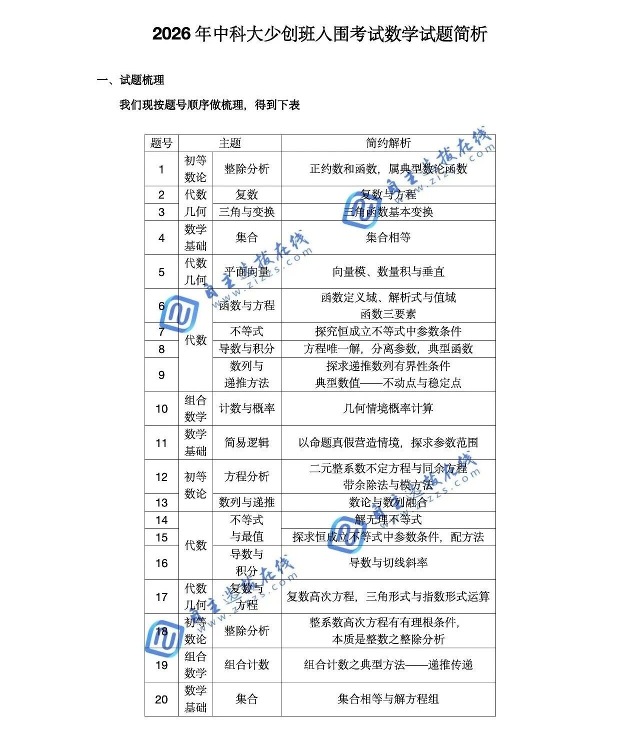 2026年中科大少年班&少创班入围考数学解析