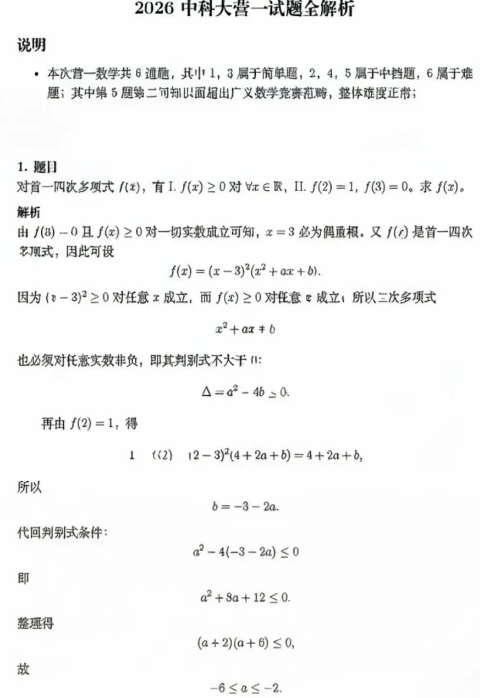 中国科学技术大学2026年创新科学营第一阶段测试今日举行,那么,目前数学考核已经结束,接下来为大家同步更新中科大创新科学营一阶段相关的数学答案内容,大家快来一起看看自己答得如何!