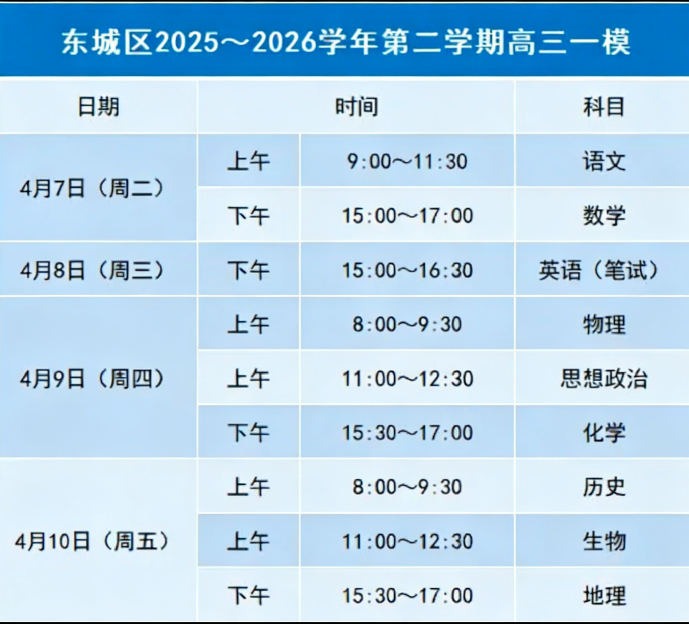 考试时间安排