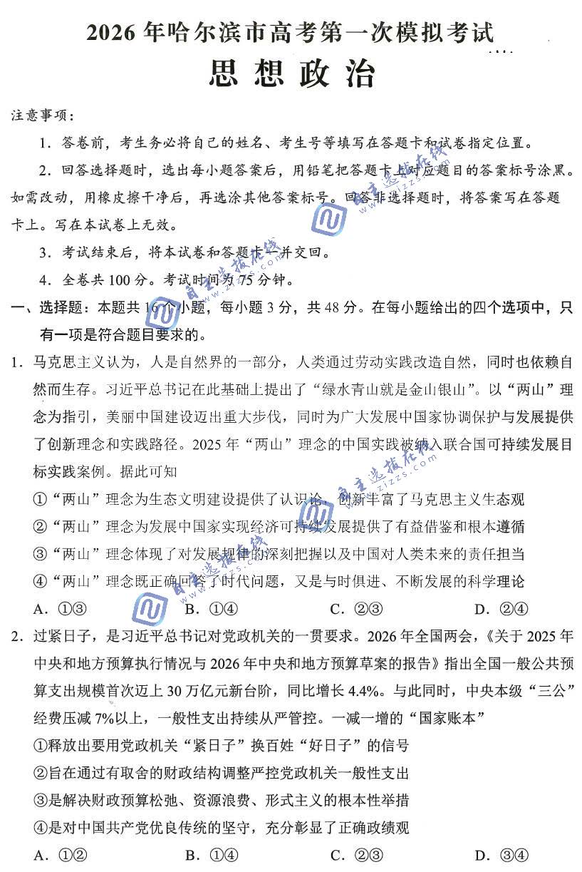 东北三省四市2026届高三教研联合体高考模拟政治试题与参考答案已发布,本次试卷紧扣新高考导向,结合时政热点与东北区域发展,融入新时代思想。
