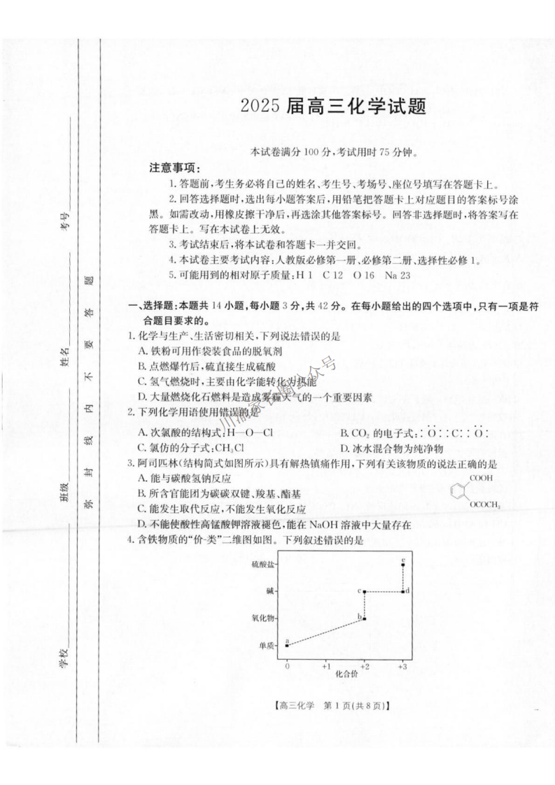 近日,2024年四川省金太阳高三12月大联考(25-188C)开考,自主选拔在线四川新高考团队整理了2024年四川省金太阳高三12月大联考(25-188C)化学试题及答案,欢迎考生及家长阅读,分享!