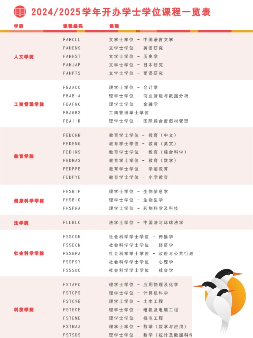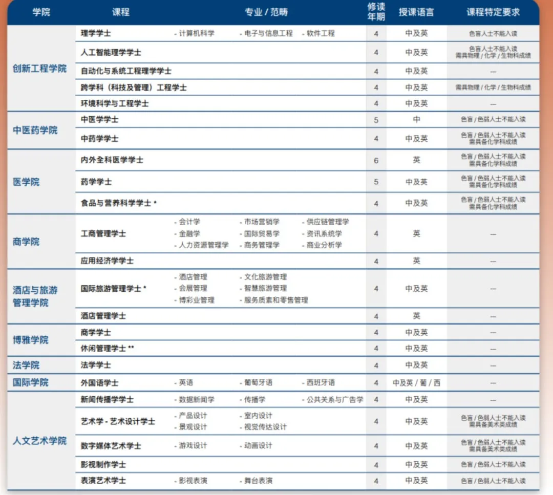 澳城大今年开设了这些专业