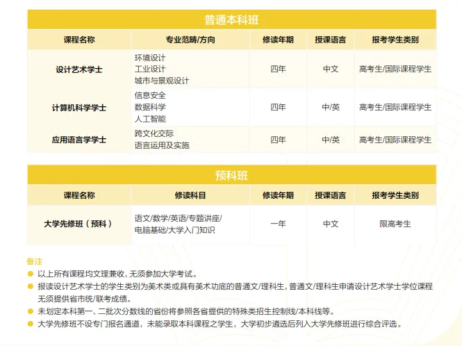 申请分为两类:普通本科班和重点本科班;