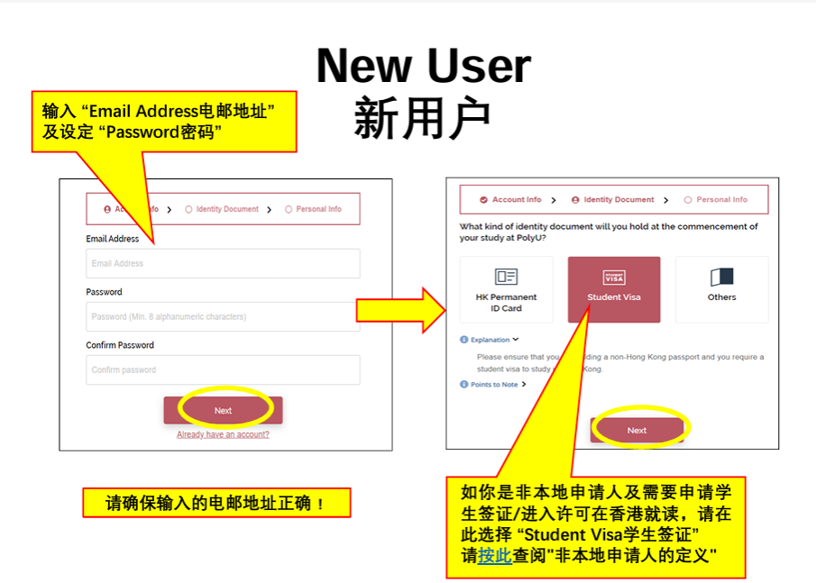 • 如你是非本地申请人及需要申请学生签证/进入许可在香港就读,请在此选择“StudentVisa学生签证”