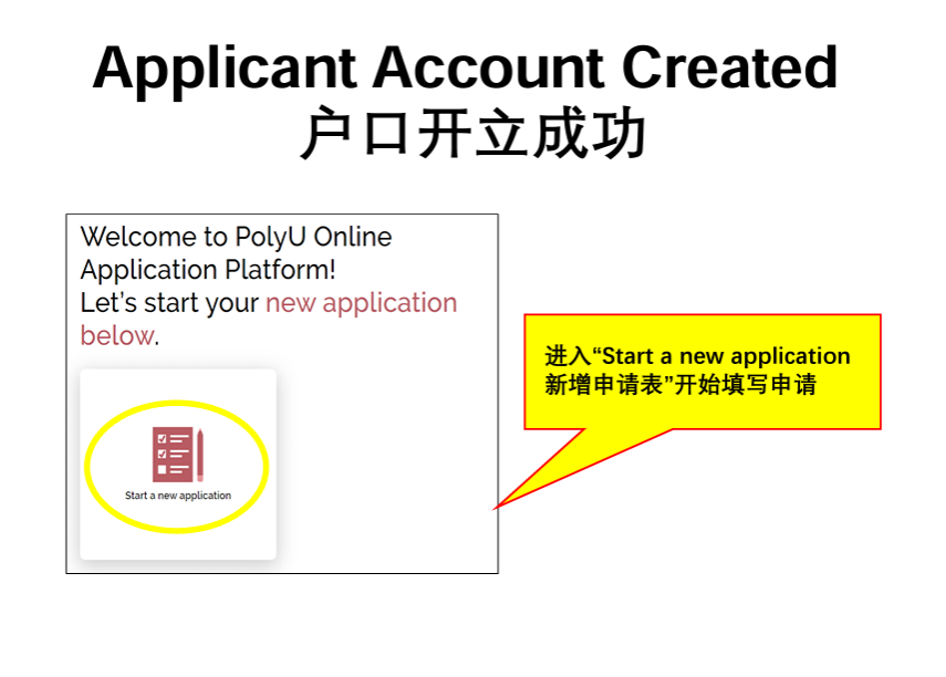 • 进入“Start a new application 新增申请表”开始填写申请
