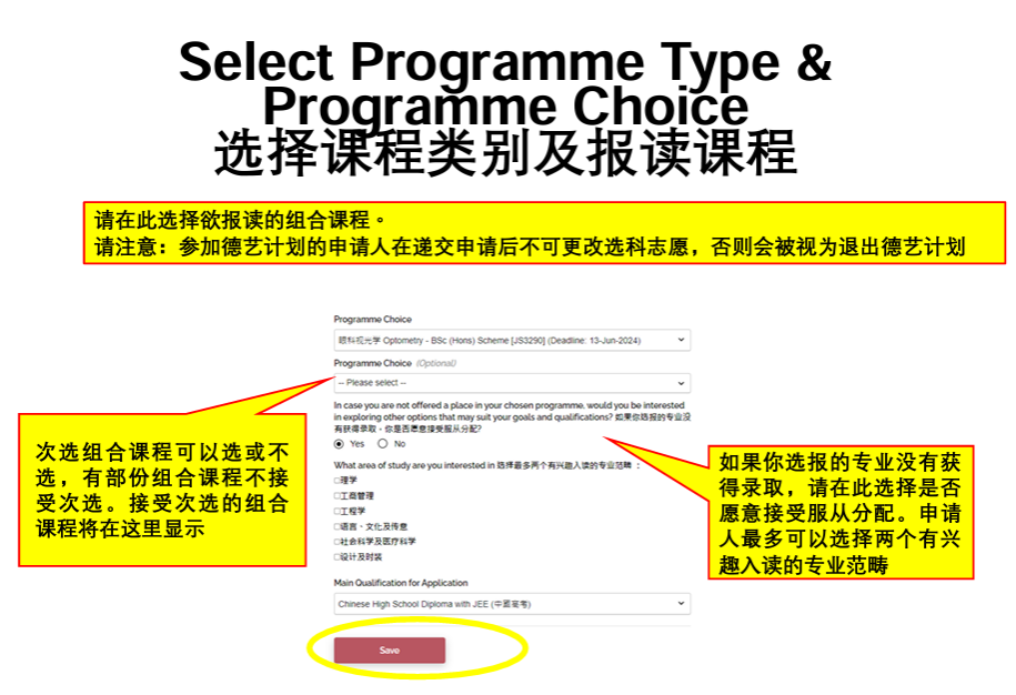 •请在Programme Choice 选择欲报读的组合课程。