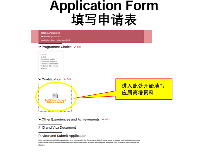 • 选择课程后,请进入qualification此处开始填写应届高考资料