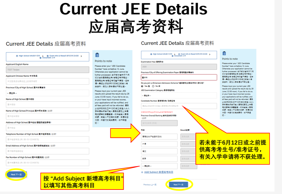 •按“Add Subject 新增高考科目”以填写其他高考科目