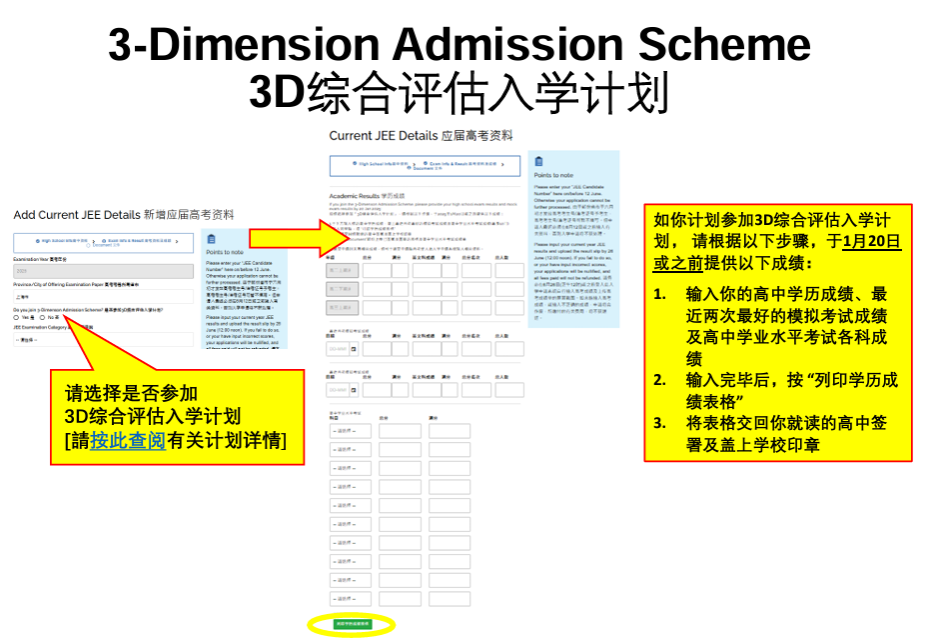 • 如你计划参加3D综合评估入学计划,请按系统要求在1月20日或之前提供所需文件资料