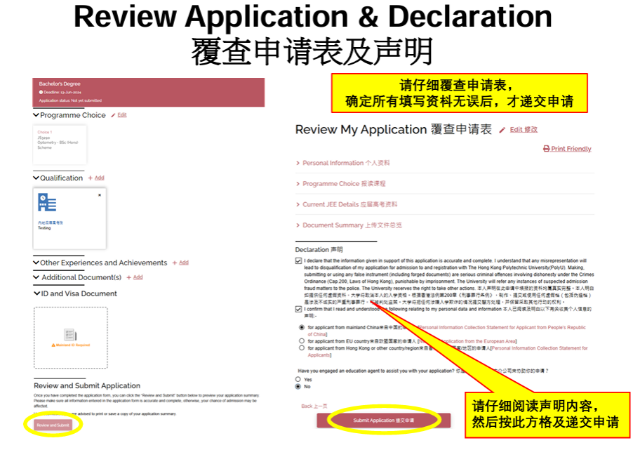 • 请仔细覆查申请表,确定所有填写资枓无误后,才递交申请