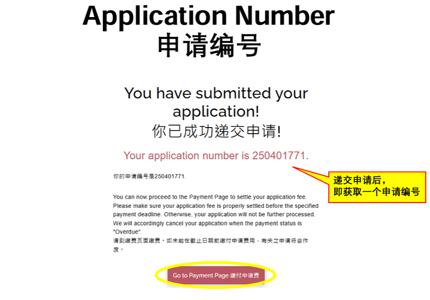 • 递交申请后,即获取一个申请编号