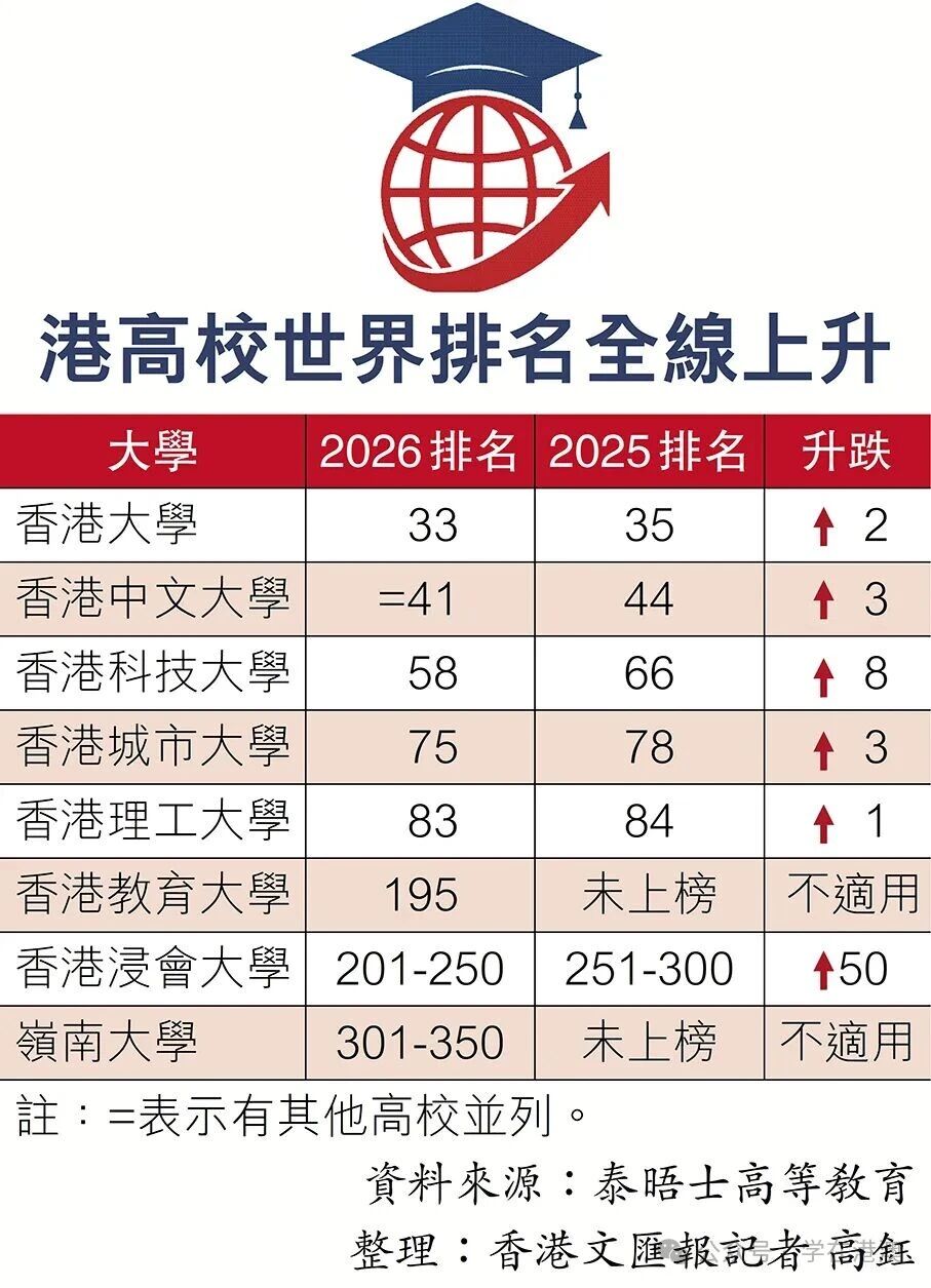 港澳院校表现出色!2026年泰晤士世界大学排名发布