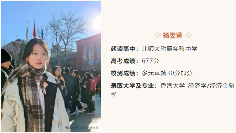 2026年港澳高校申报已经开始!该如何进行准备呢?今天为大家分享:来自北师大附属实验中学杨雯萱同学的港大备考经历。她多次大考年级排名前30,积极参加营期活动,语数外均衡发展,最终通过多元卓越计划加30分上岸香港大学!一起来看她是如何做的?