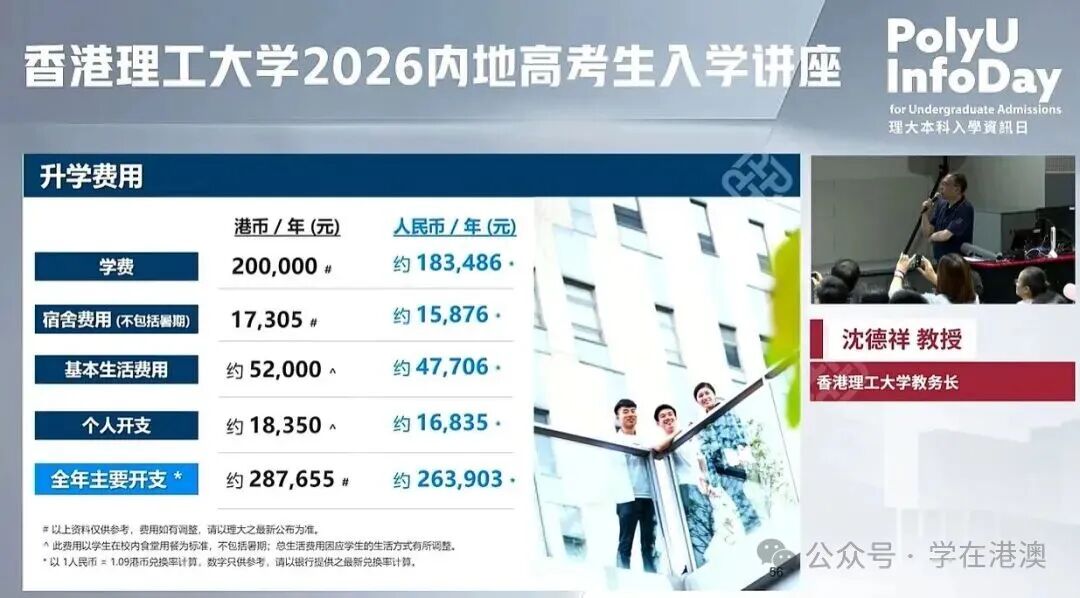 港理工2026年学费涨到了20w港币一年,加上其他杂费,学校预估一年开支约28.7w港币。