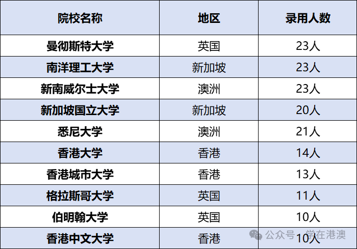 前三甲:香港大学(14人)、香港城市大学(13人)、香港中文大学(10人)—— 电力系统、新能源专业课程含大湾区企业实习模块,留港/回内地就业双便利。