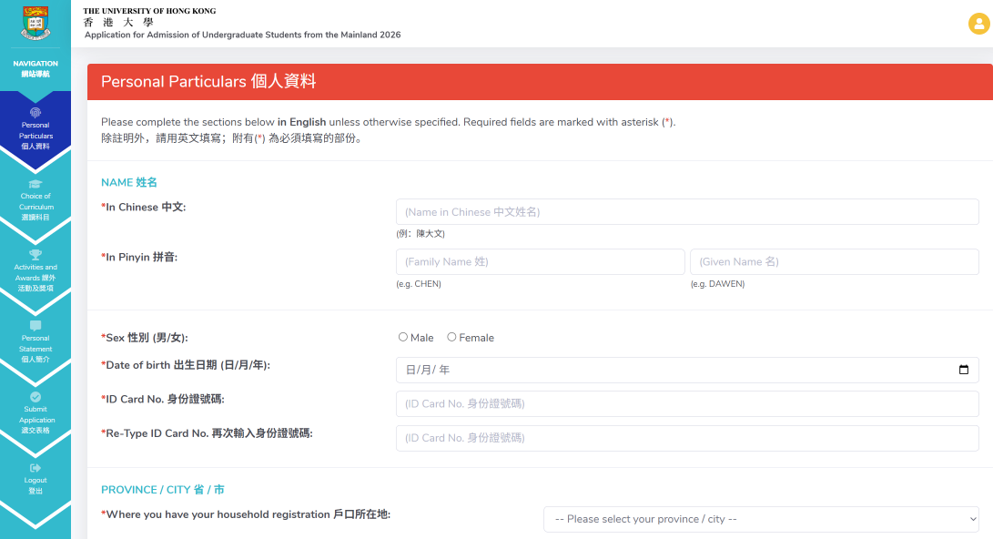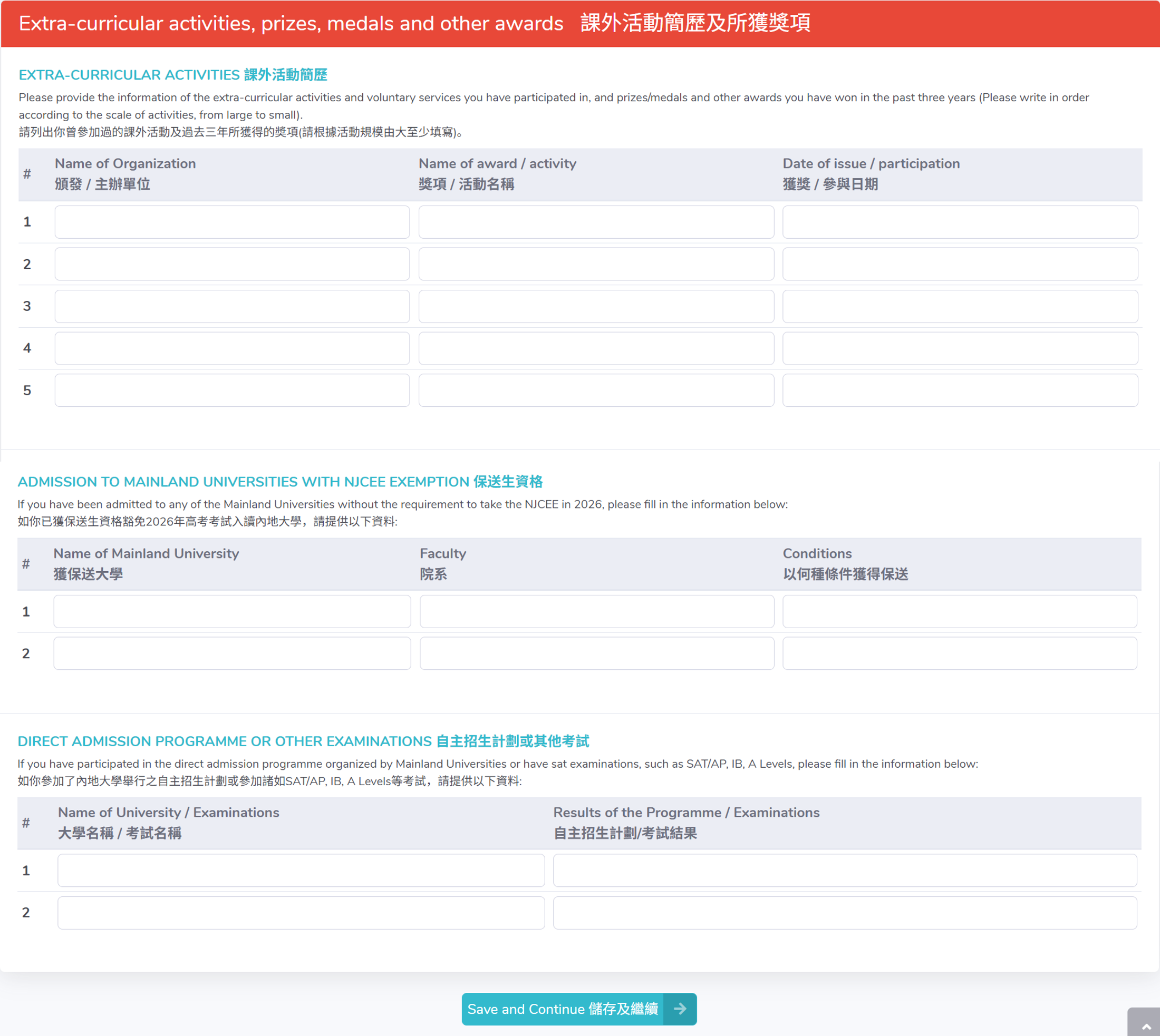 3.9 递交表格后性别,就读中学,考生种类及申请人在港居留权将无法修改,其他内容仍可修改。