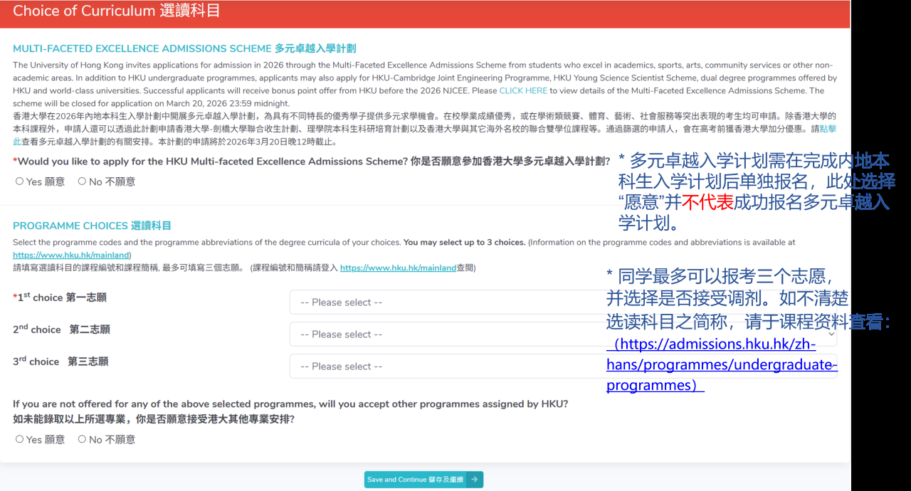 3.6 学生最多可以报考三个志愿,并选择是否接受调剂。如需查询专业简称和编号,请登入www.hku.hk/mainland,选择“课程一览” 查看。