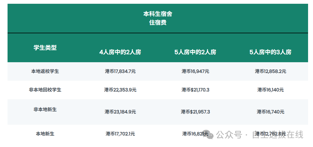 宿舍费:下图为2025/26学年费用,仅供参考。
