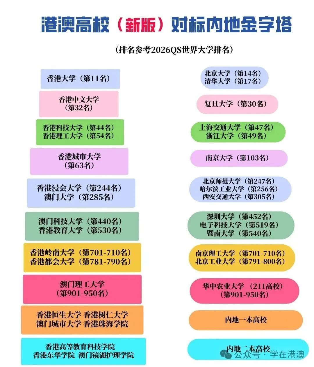 「香港大学」从QS世界大学排名来看,与内地的 「清华大学」 和 「北京大学」属于同一梯队。在QS排名上,香港科技大学和上交、浙大相当。