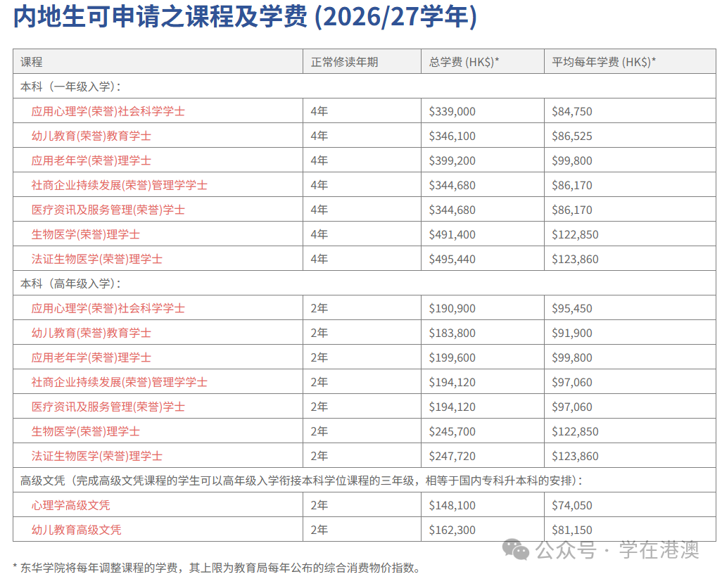 为鼓励优秀内地学子,东华学院在2026/2027学年继续设立内地高考生入学奖学金。成功入读指定课程的应届高考生中,高考总分位列前十名,且英语科成绩达到100分或以上者,将有机会获得港币30,000元的奖学金。