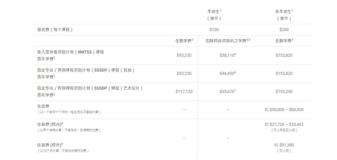 - 以上为2026-27学年的学费水平,第二至第四年之学费则按照香港特区政府每年公布的综合消费物价指数调整。
