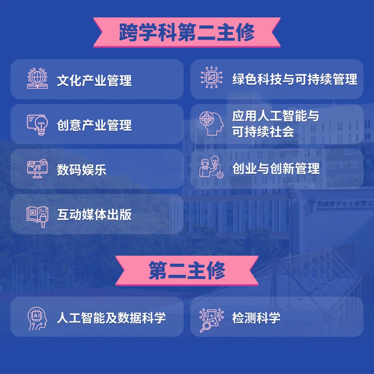 旨在满足香港特定的人才需求,帮助学生整合不同学科的知识,在多个职业领域中取得卓越表现;而第二主修则让学生深入学习另一个学科,以补充主修课程。这一设置不仅为学生的职业发展做好准备,也为他们各自领域的未来发展奠定基础。