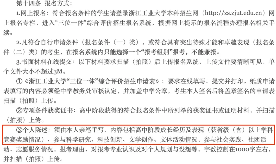 注:高水平三位一体报名简章截图,需提交省级奖项!