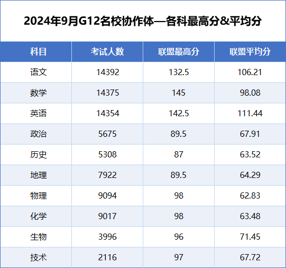 关于2024年9月G12名校协作体的考试成绩数据相关信息,有很多班级不公布联盟排名情况,所以信息整理并不完全,补充信息可以进群或在评论区留言!