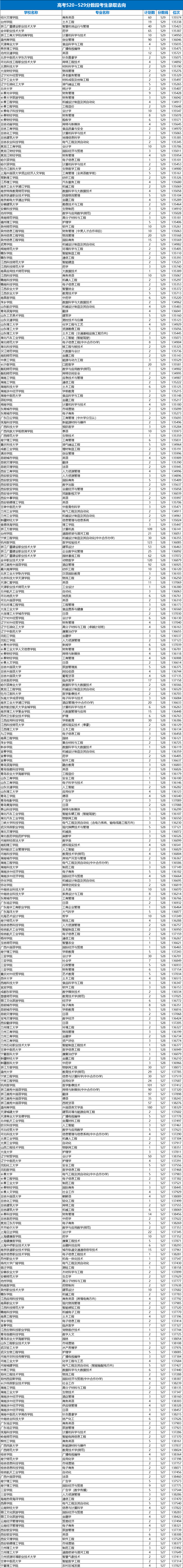 以下为2024年浙江高考520-529分的考生的录取院校!