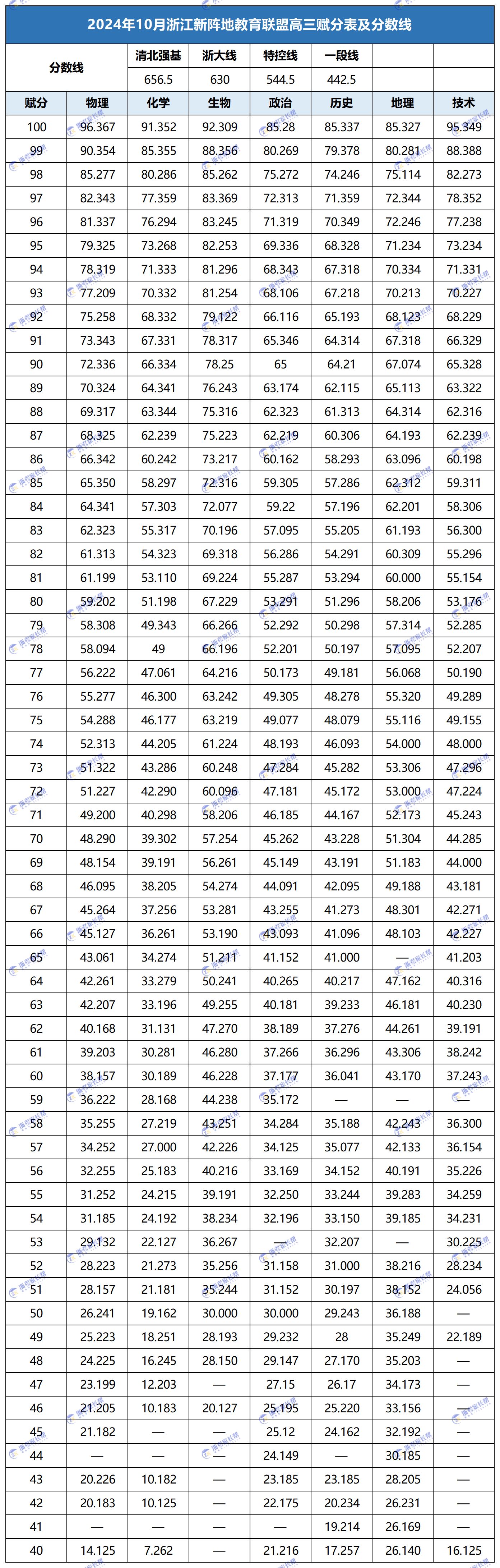 2025届浙江省新阵地联盟高三10月联考赋分表
