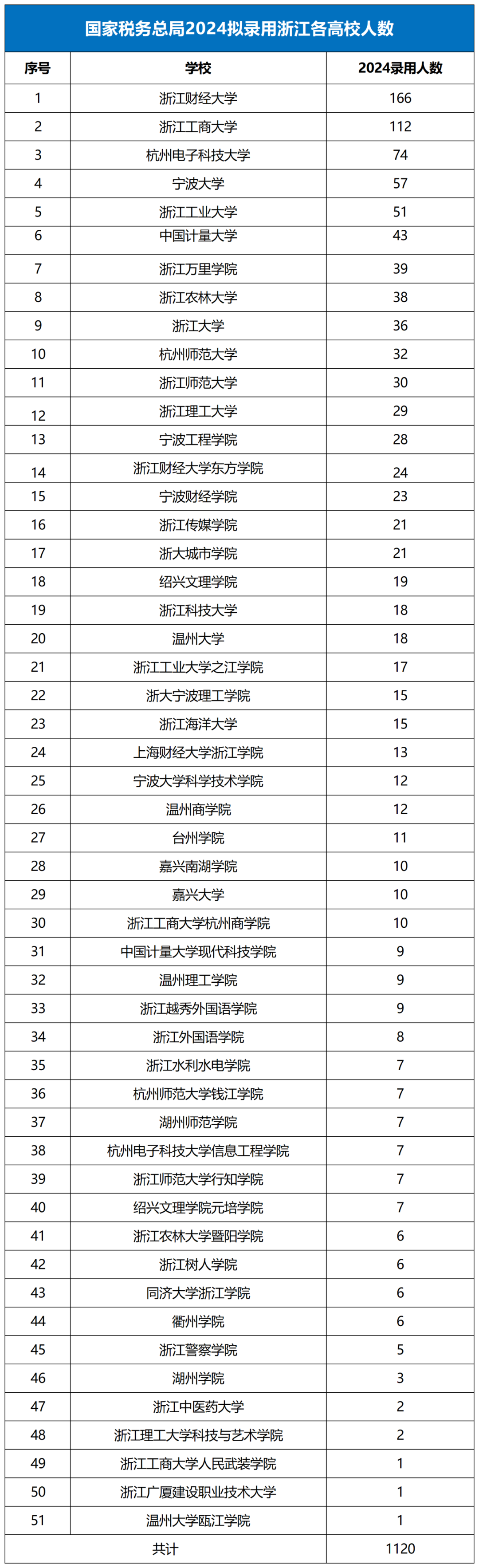 浙财第一,宁大第四,浙大第九!2024年国家税务总局拟录用名单公布