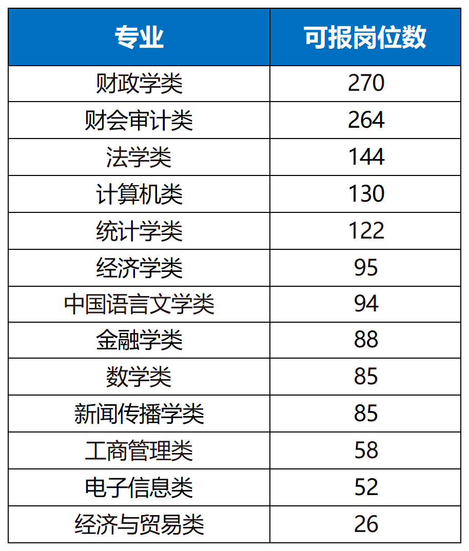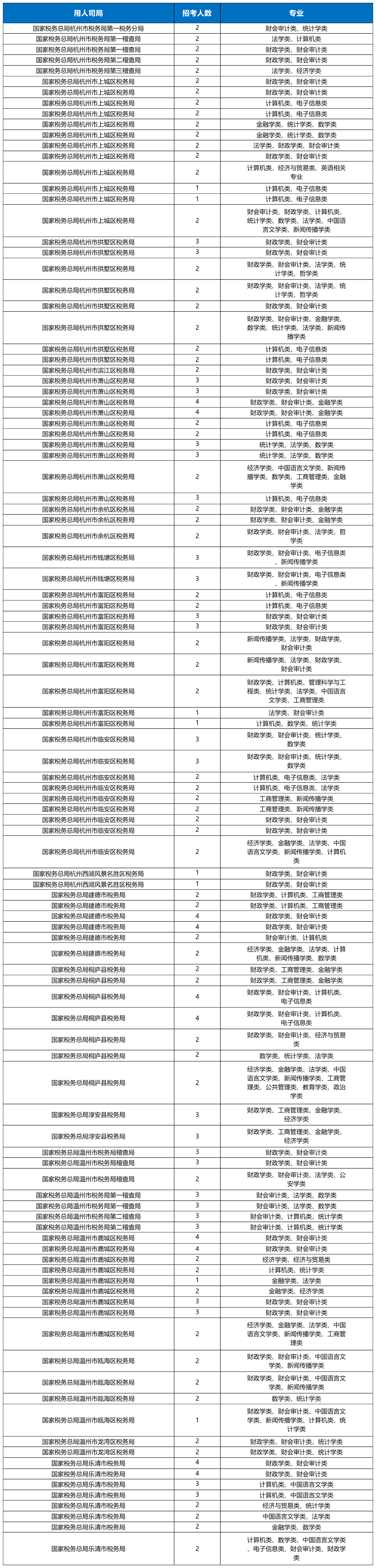 2024浙江省税务局共计招聘468个岗位,这几类专业可报考岗位最多: