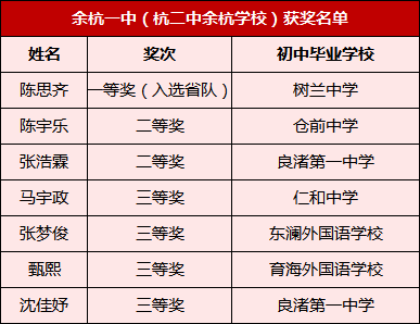 陈思齐荣获,全国一等奖(浙江赛区),并以全省第9名的成绩入选省队