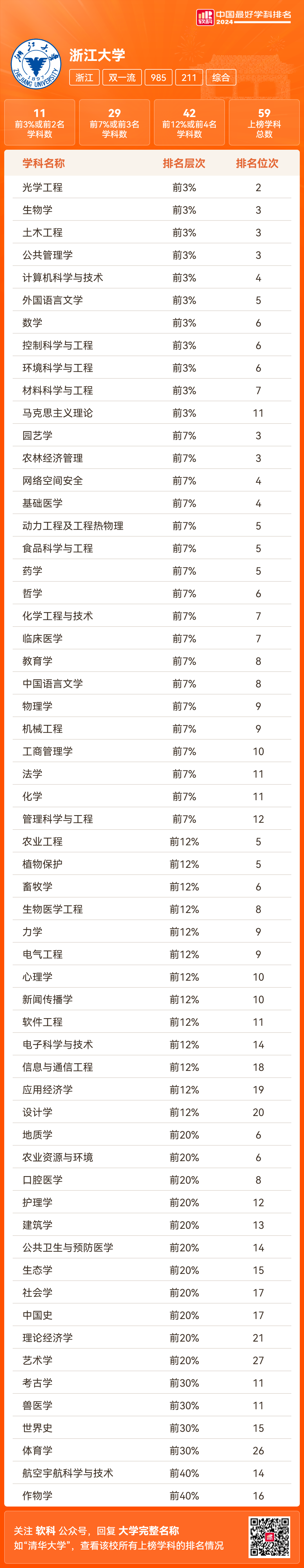 2024年10月15日,高等教育评价专业机构软科正式发布“2024软科中国最好学科排名”,浙江大学赫然在列,仅次于清北复交人,今天自主选拔在线浙江新高考团队整理了相关内容,供考生参考!