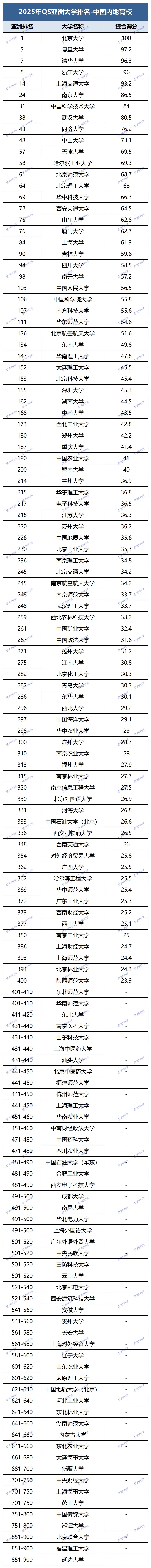 中国共有197所大学进入QS2025亚洲大学排行榜。其中,中国内地135所,中国香港11所,中国台湾48所,中国澳门3所。