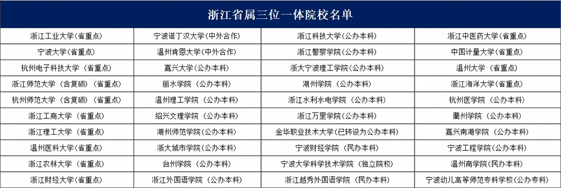 浙江省三位一体院校层次划分