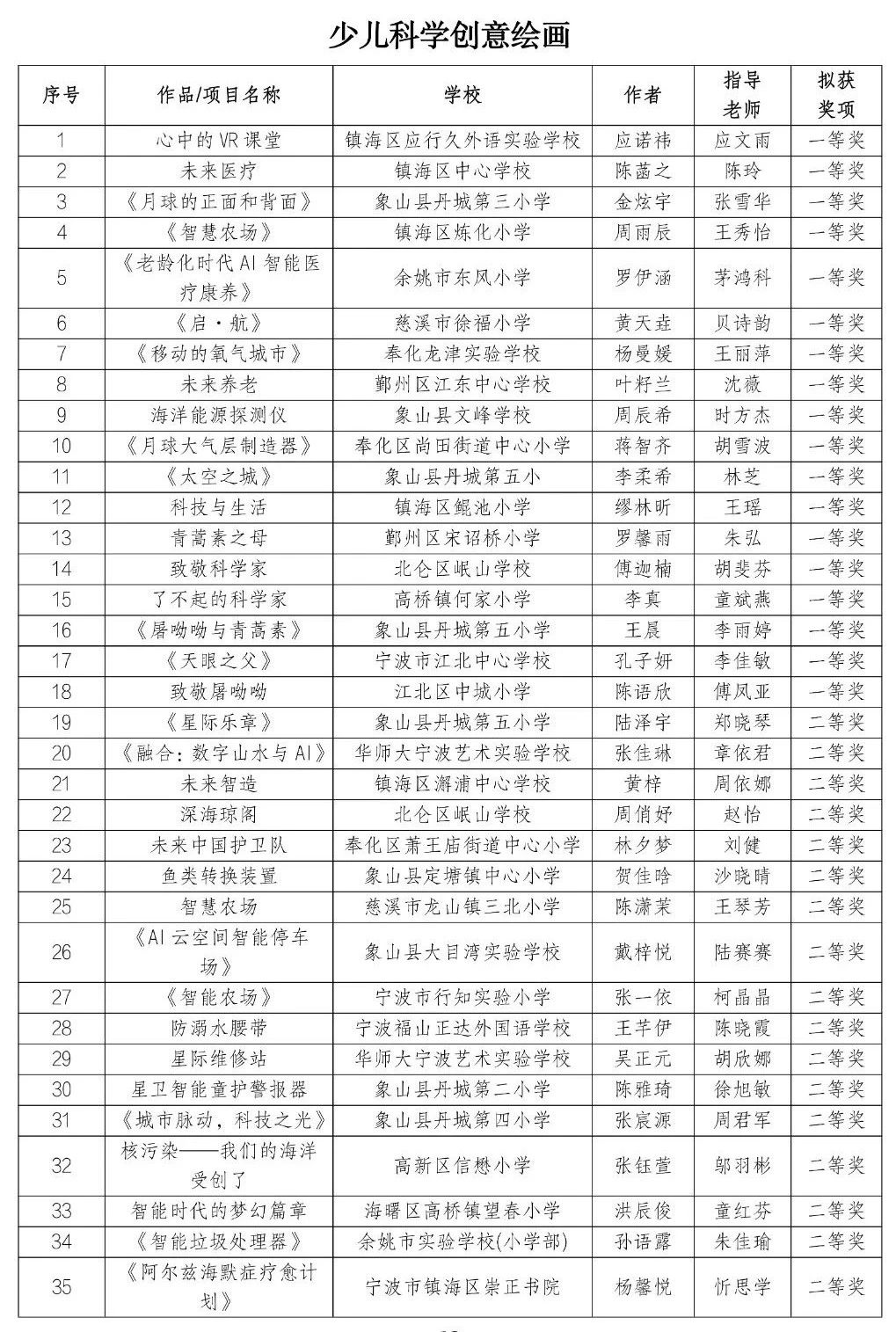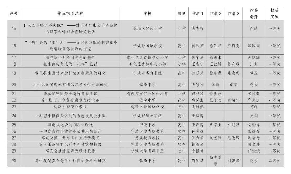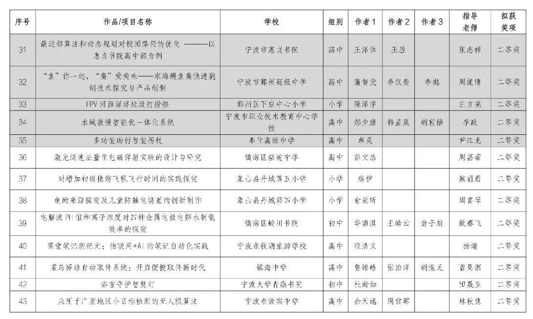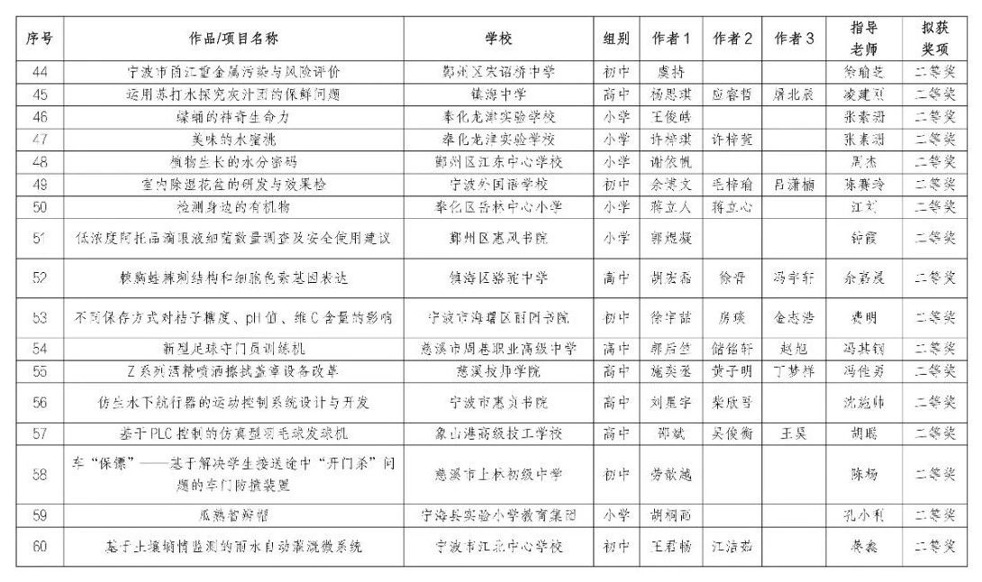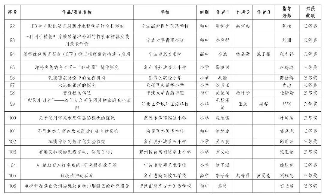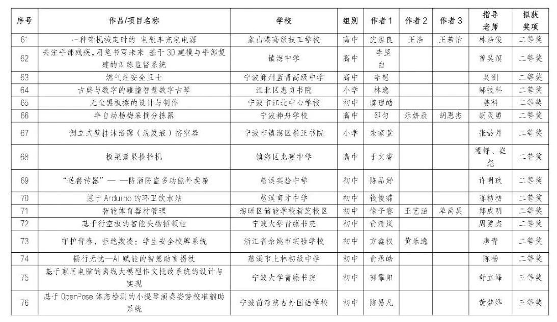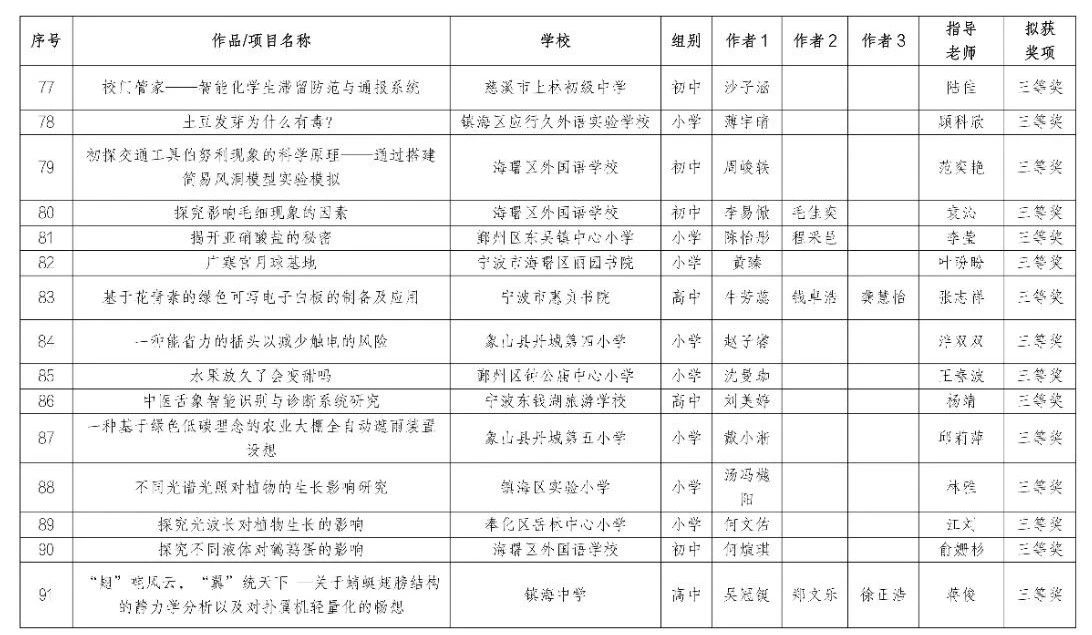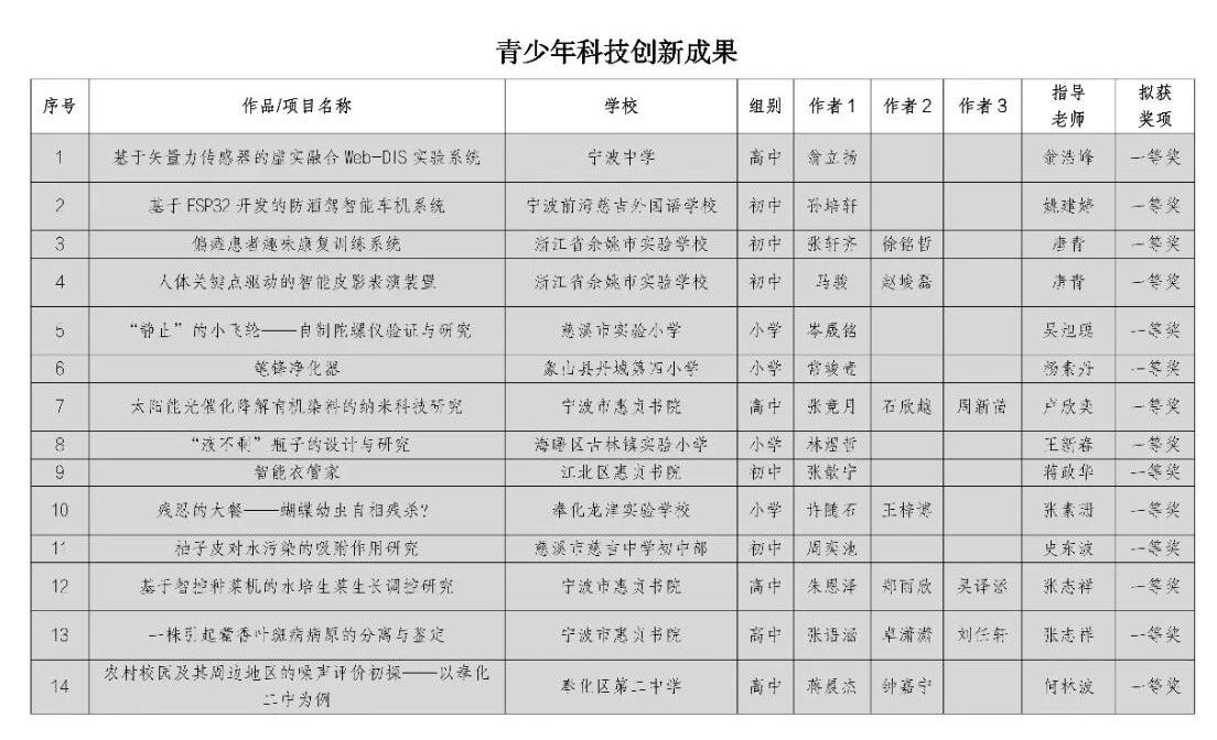 2024年宁波市青少年科技创新大赛获奖名单公示