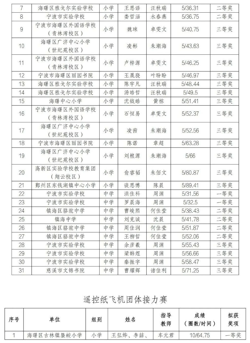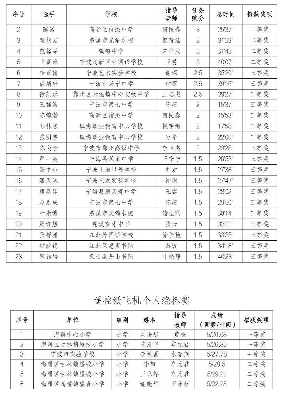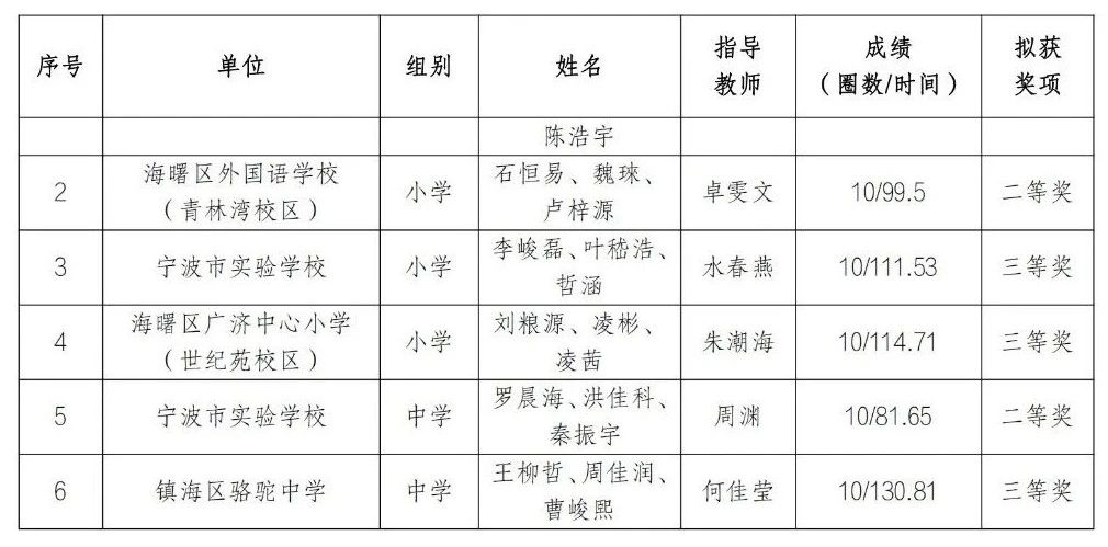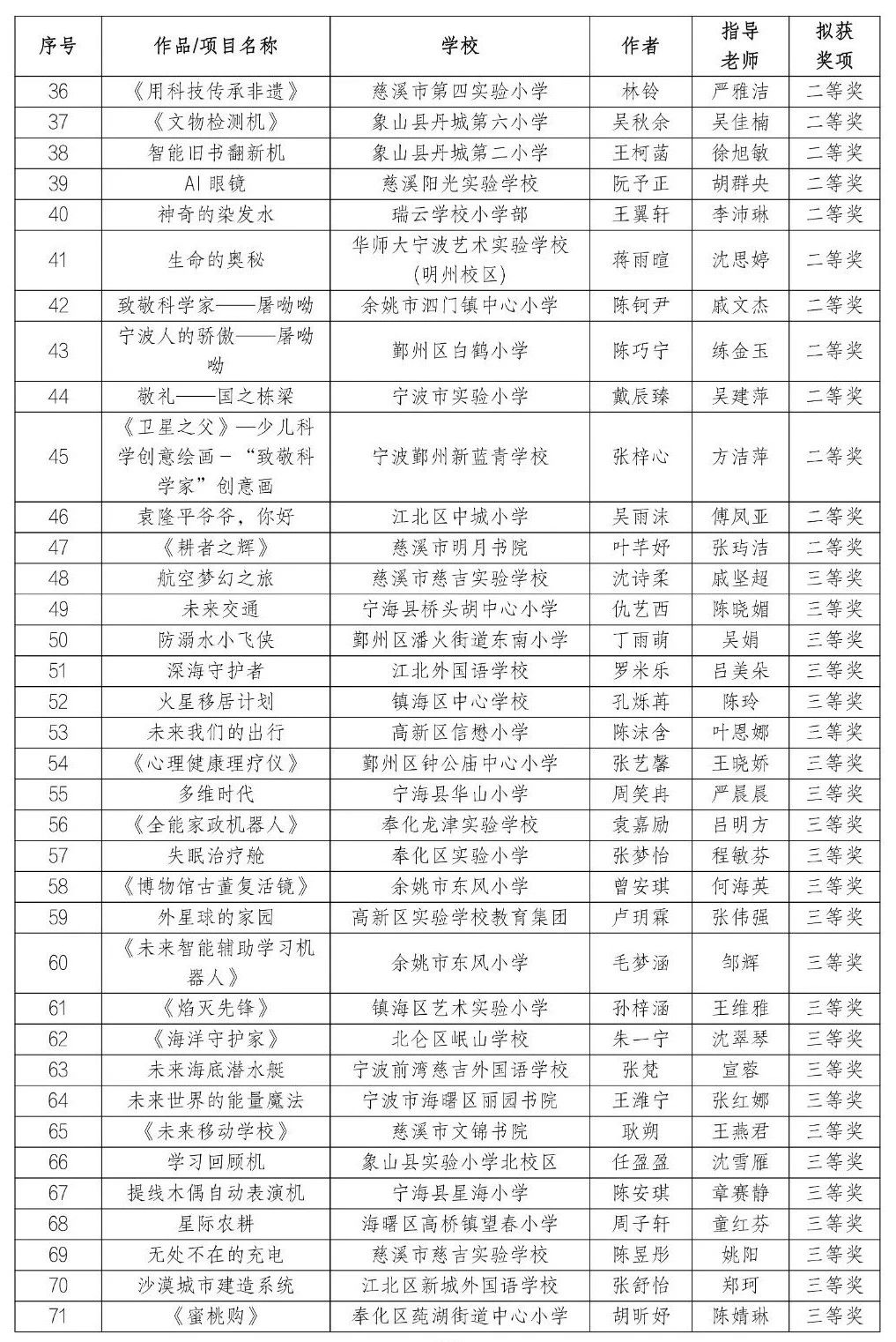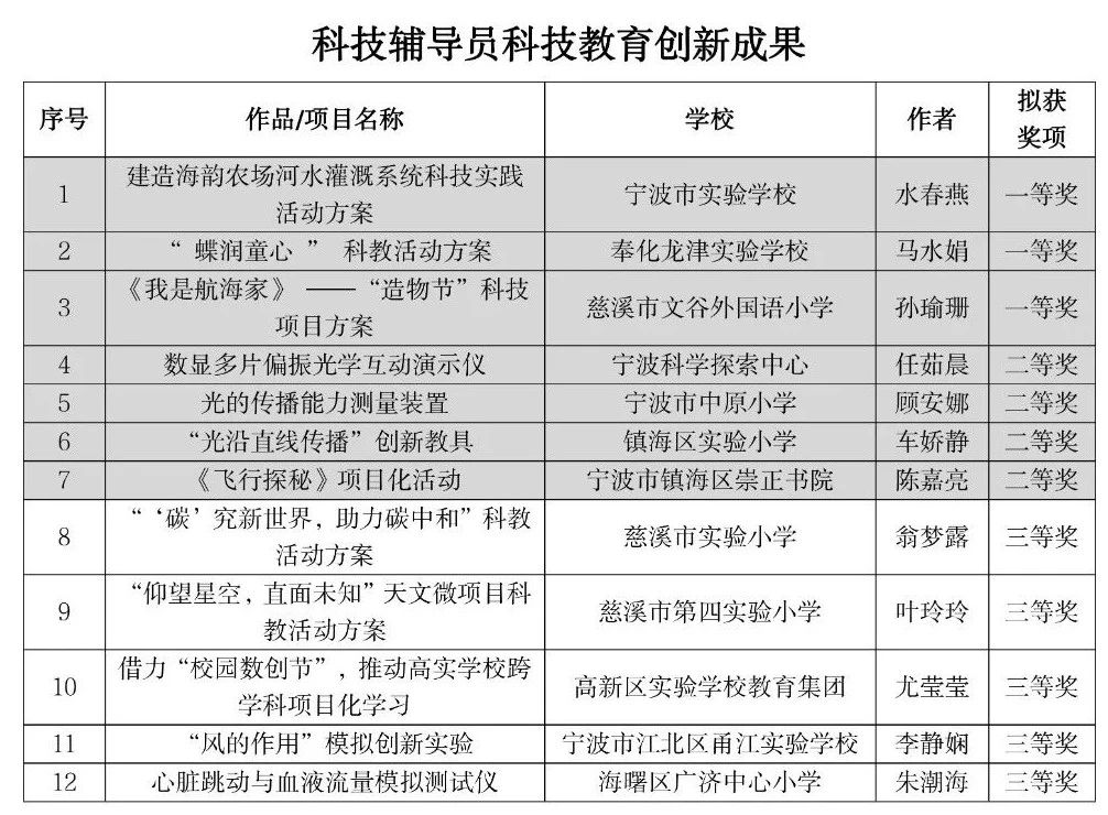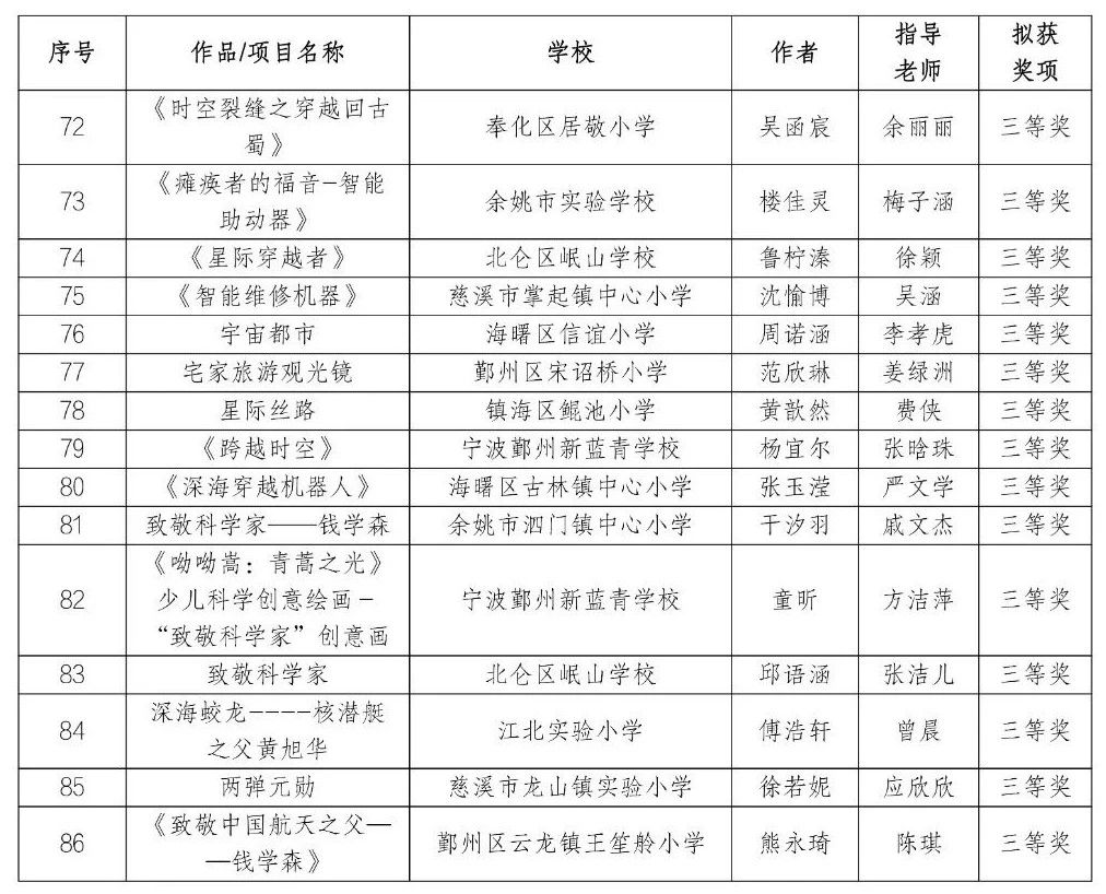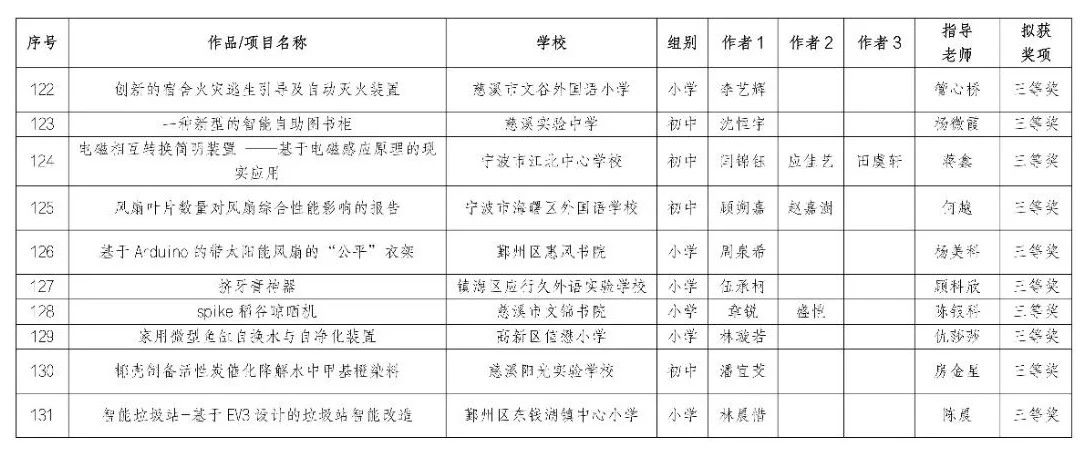 2024年宁波市青少年科技创新大赛获奖名单公示